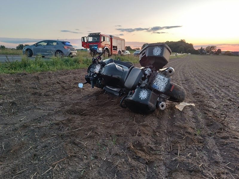 Niestety drugi z niedzielnych wypadków z udziałem motocyklistów miał bardzo tragiczny finał. W zdarzeniu, które miało miejsce kilka minut po godzinie 18 na drodze wojewódzkiej pomiędzy miejscowościami Wierzchowice – Czarnogoździce w powiecie milickim zginął 51-letni mieszkaniec Sycowa. Wstępne ustalenia poczynione przez policjantów nadzorowanych przez przybyłego na miejsce prokuratora oraz w obecności biegłego z zakresu badania przyczyn wypadków drogowych wykazały, że mężczyzna jadący w stronę Milicza ciężkim motocyklem marki Yamaha na jednym z łuków drogi prawdopodobnie w wyniku niedostosowania prędkości do warunków drogowych stracił panowanie nad pojazdem i zjechał na prawe pobocze drogi doprowadzając do przewrócenia się motocykla na polu uprawnym. Niestety obrażenia ciała doznane przez 51-letniego motocyklistę były na tyle poważne, że mężczyzna poniósł śmierć na miejscu wypadku. Nikt inny nie ucierpiał, żadne inne pojazdy nie uczestniczyły w tym zdarzeniu. Mężczyzna posiadał prawo jazdy uprawniające do jazdy motocyklami.