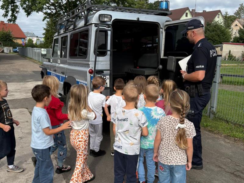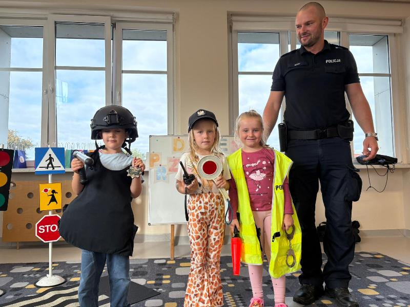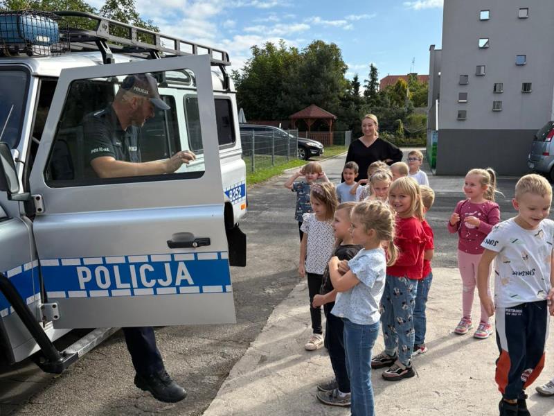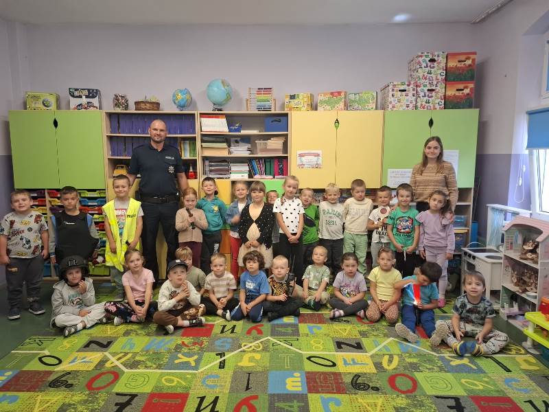 Dzielnicowy z wizytą u milickich przedszkolaków