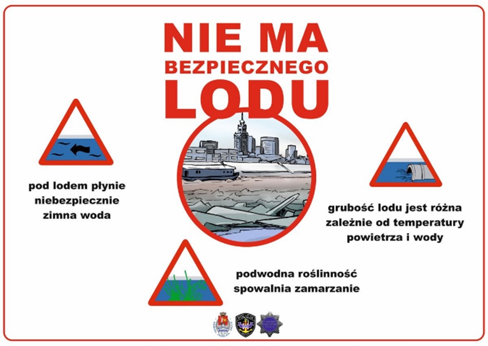 Pamiętajmy, że każde wejście na zamarznięty zbiornik wodny jest ryzykowne, nawet przy bardzo dużym mrozie. Lód ulega ciągłym zmianom, również dobowym i nigdy nie ma tej samej grubości na całej powierzchni. Poruszanie się po lodzie bez odpowiedniej wiedzy i sprzętu asekuracyjnego może zakończyć się tragicznie.