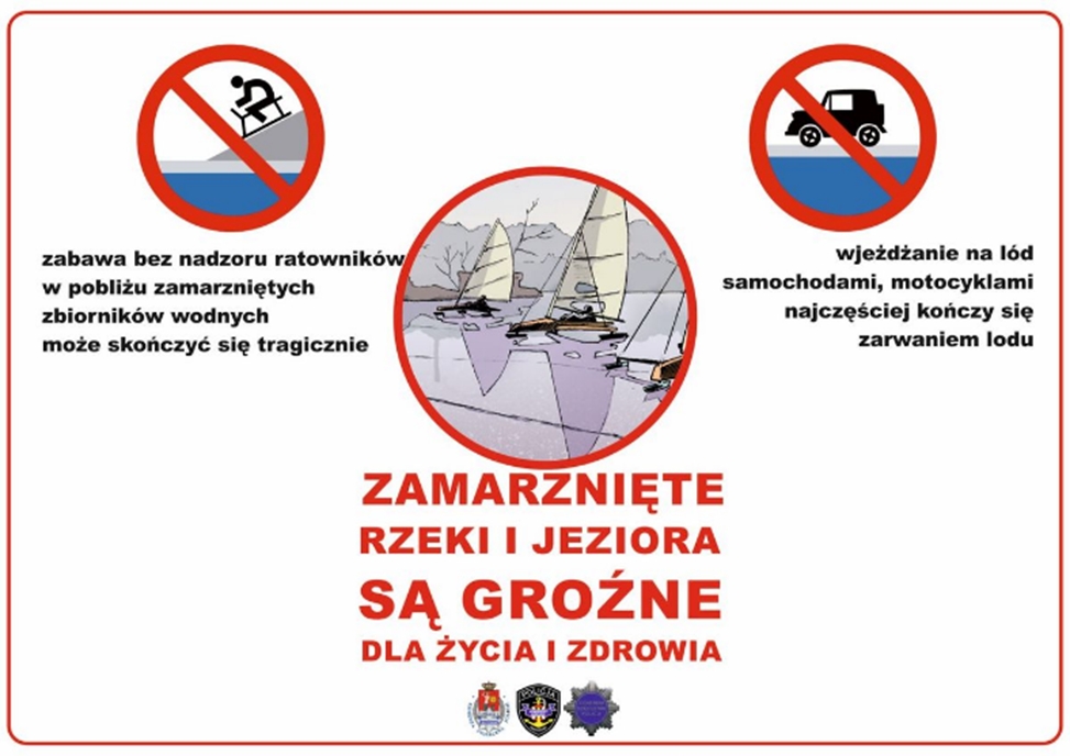Zamarznięte stawy, jeziora i rzeki są niebezpieczne. Brak ostrożności i nadzoru nad dziećmi, a także lekkomyślność dorosłych może prowadzić do tragedii. Należy pamiętać, że nieprzemyślane, lekkomyślne korzystanie z uroków zimy może zakończyć się tragicznie. Kontrolujmy, gdzie bawią się nasze dzieci. Uczulmy je na niebezpieczeństwo, jakie niesie ze sobą zabawa na zamarzniętych zbiornikach. Sprawdźmy, czy w razie potrzeby będą potrafiły wezwać pomoc. Uczmy przewidywania i unikania sytuacji zagrażających życiu i zdrowiu.