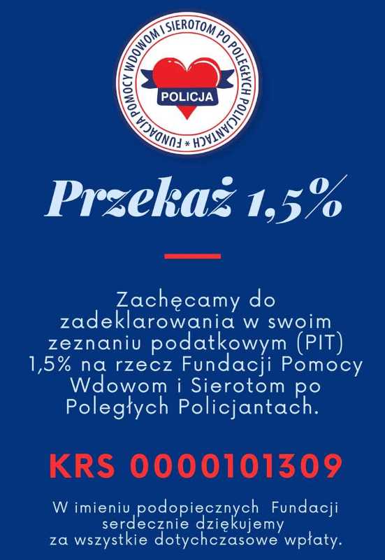 To proste! Wystarczy w zeznaniu podatkowym wpisać numer KRS 0000101309. Nic Cię to nie kosztuje, a dla rodzin po poległych policjantach to bezcenna pomoc.